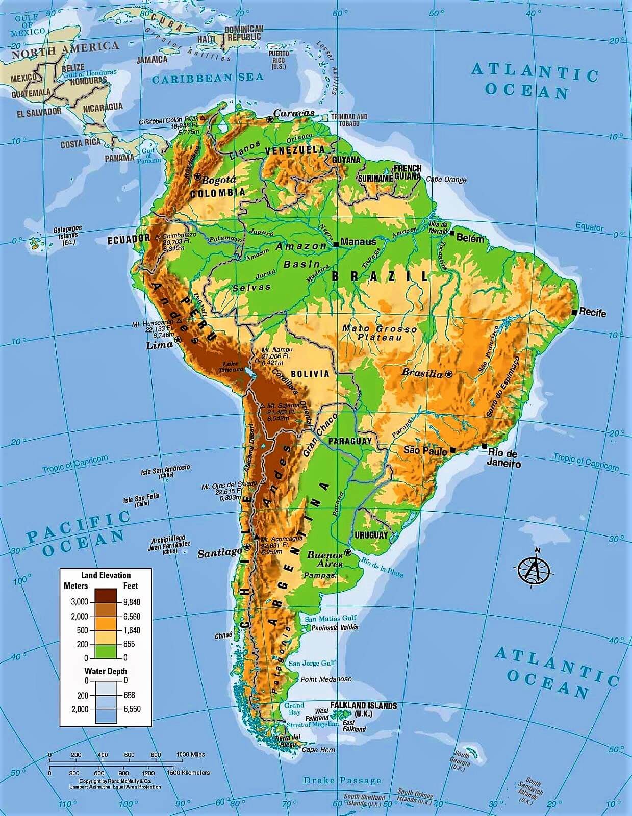 | Continente | Montañas y cordilleras | Llanuras | Depresiones | Mesetas | Ríos | Mares |