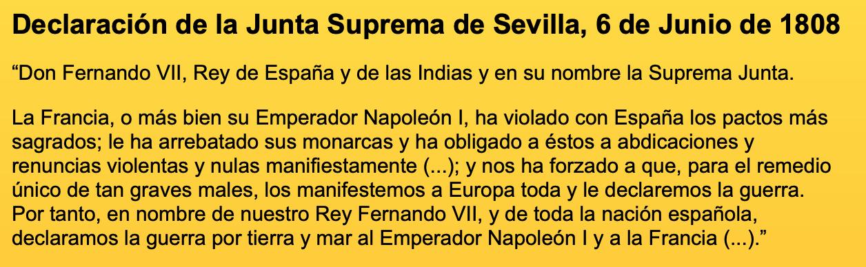 1. Las juntas, organizadas por el pueblo, las cuales se formaron en muchas localidades dando lugar a las juntas provinciales y éstas a la Junta Suprema Central, plasmándose así el principio de soberanía nacional.