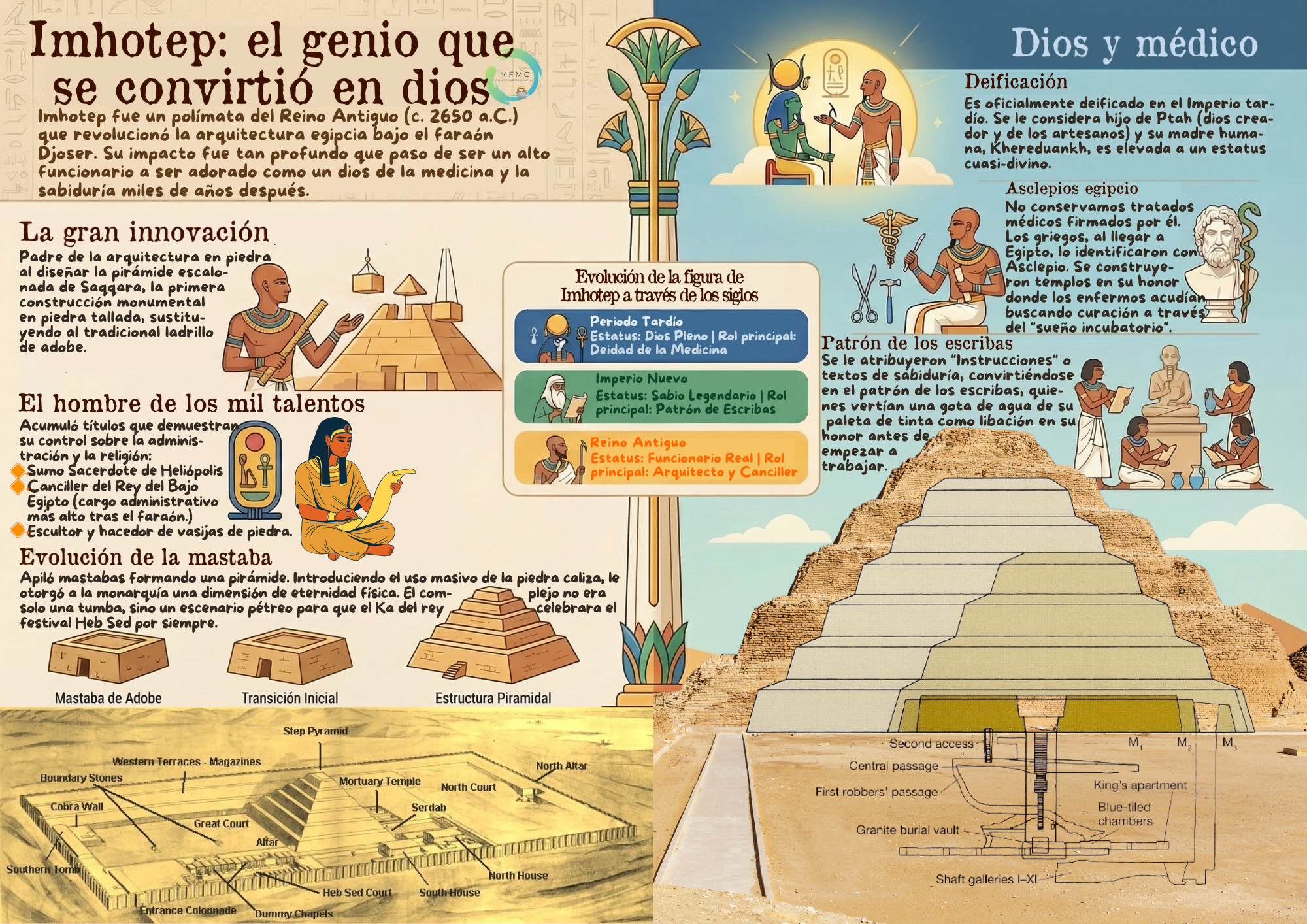 DJESER, SANAKHT, KMABA, NEFERKA, HUNI. El 1º DJESER o NETERIERKHET del que conocemos a IMHOTEP (personaje semi-heróico), aparece venerado como dios. Era un visir. Manetón nos dice que era considerado como inventor de la medicina, dedicado a las artes y las letras. Inventó la piedra tallada (capital en Menfis) y se enterró en SAQQARAH.